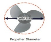 For outboard and sterndrive propellers, diameter is related to pitch, Generally the lower the pitch the larger the diameter and vice versa. The reason for this is generally boats that require low pitches are slower and heavier and they need propellers with a larger diameter to give improved thrust. Faster lighter boats need less thrust to achieve planning speeds and therefore less diameter but larger pitches to give optimum performance.