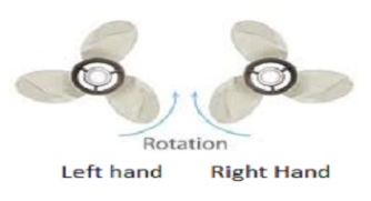Propellers are either left or right handed. Left handed propellers rotate anti-clockwise as viewed from behind the boat looking towards the stern. Right hand propellers turn clockwise.